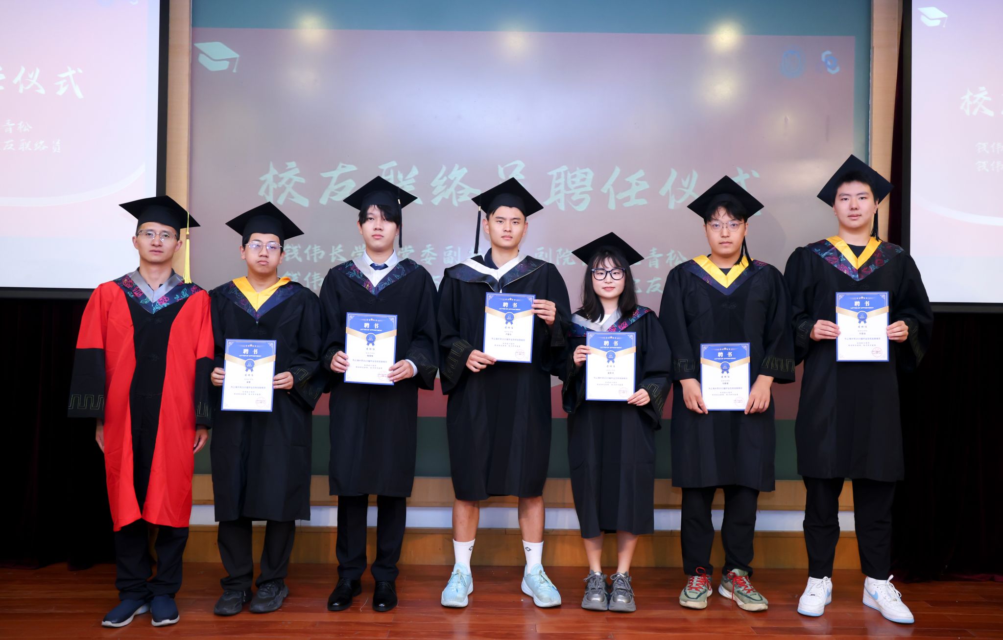 为保持母校与校友间的沟通与联系,典礼上,沈青松老师为盛若鸿、梁衡、马紫健、钱璟林、卢家乐、刘昱含等6名同学颁发了国产亚洲精品美女久久久校友联络员聘书,鼓励他们今后发挥好学校和校友之间的桥梁作用,讲好上大故事、传承伟长精神。