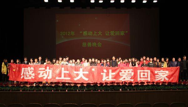 截至2012年,“感动上大 让爱回家” 已经走过了9年,9年来无数的上大师生为感动上大奉献着最温暖的言语,最真切的行动,最真挚的爱心。2012年“感动上大 让爱回家”共募集善款 137405元,共有577名同学受助。为了进一步做好爱心助学工作,倡导慈善义举,营造和谐关爱的校园氛围。2013年1月8日晚,学生社区在伟长楼举行了以 “感动 感悟 感恩”为主题的2012年“感动上大,让爱回家”慈善晚会。校长助理、研究生工作党委书记李伟,学生工作办公室主任林海霞,校团委书记胡大伟,成才服务中心主任汤琳夏、武保处副处长何金伟、学生工作办公室副主任陆瑾、学生社区管理部主任、社区学院党委书记兼常务副院长王军华和各学院的分管学生工作副书记等领导莅临现场,与广大学生以及社区员工一同观看了本场晚会。